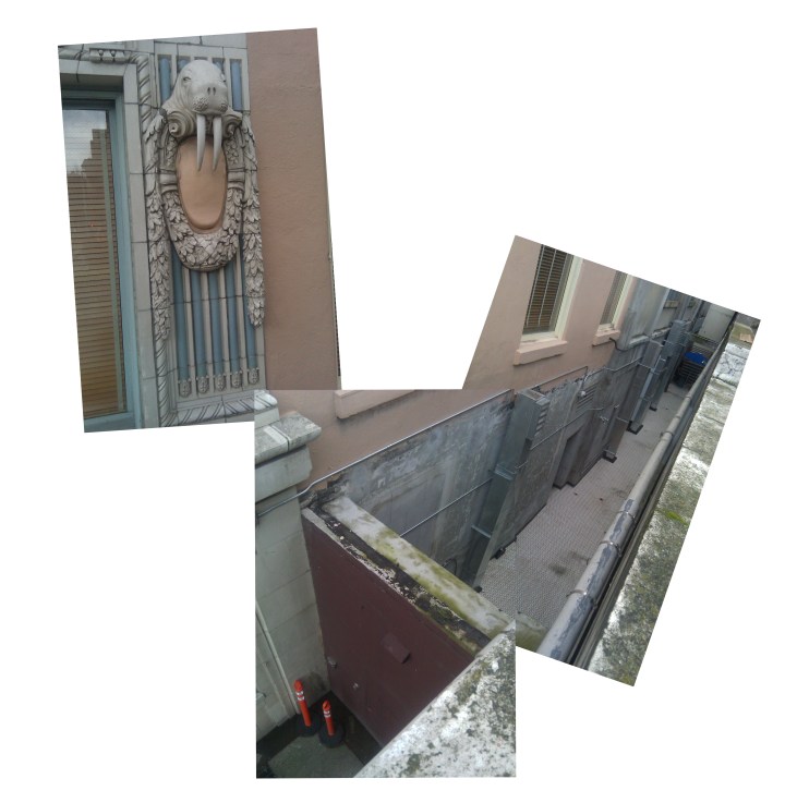 Acting as a tour guide this weekend to my mother visiting from Portland, we found some very interesting situations in the alley network. The Arctic Club, one of my favorite buildings in the city, seems to have blocked off and embellished its alley with a lovely oyster tile no doubt to secure it as a back of house area and the conveyance of food, drink, and waste in a classy manner. You can climb up on top of the parking structure at 4th and Cherry and look down into this space. Imagine it converted into a gallery or glass-roofed greenhouse addition to the hotel. There is a party wall to the north that would need to be opened.