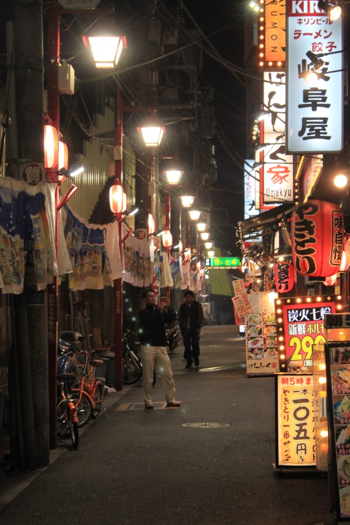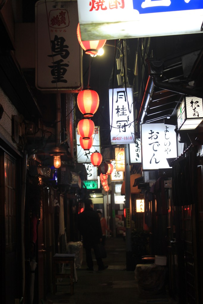 Before returning to Kyoto from Tokyo, I met up with my friends Makoto, Taka, and Yosuke, whom I hadn’t seen in six years since studying with them in Eugene. After dinner I explored Nonbei Yokocho and Shonben Yokocho, two former post war ramshackle outdoor market turned alley bar and restaurant mini districts. Shomben Yokocho, or Pisser’s Lane was a working class drinking area during and after the war, now attempting to re-brand into Memory Lane. After meeting my friend Yosuke again, we took a trip through the final notorious alley spaces of Tokyo with Nonbei Yokocho, or drunkard’s alley, which was formerly an outdoor market very near Shibuya’s famous intersection.. This place is a small two lane strip full of two and three story alley bar and restaurants similar to Shinjuku’s Golden Gai, yet more refined, and perhaps less notorious. We had a great night full of interesting conversations (of which I understood about a third of), drink, and food.